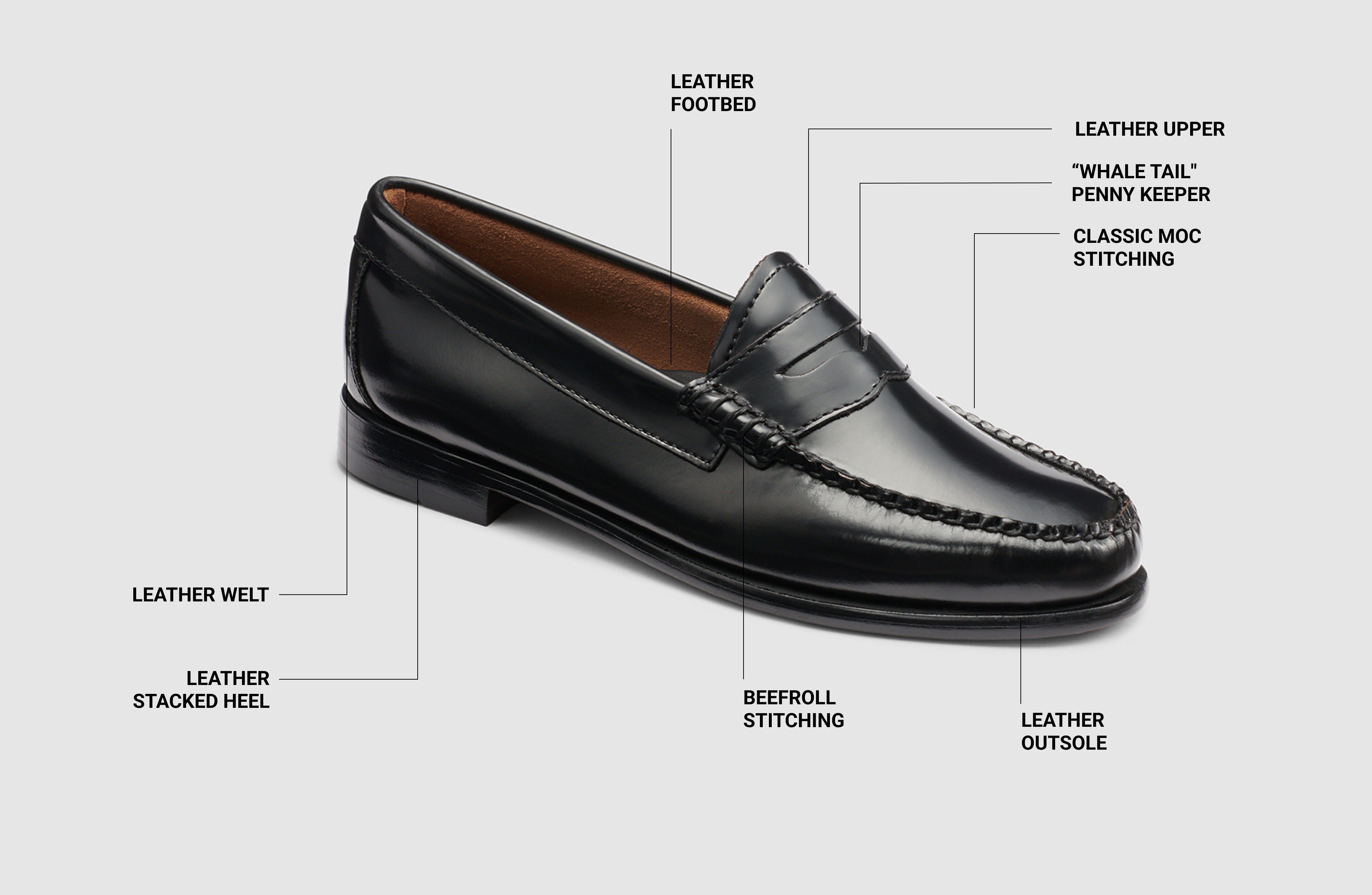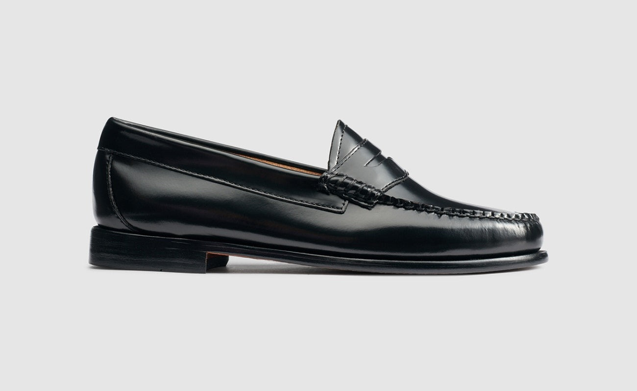 G.H.BASS was the first American manufacturer to construct leather loafers inspired by fashionable footwear popular in the social scene of Palm Beach. Featuring a signature strip of leather stitched across the saddle of the shoe, these penny loafers harkened back to traditional shoes worn by Norwegian fishermen, hence the name “Weejuns.”